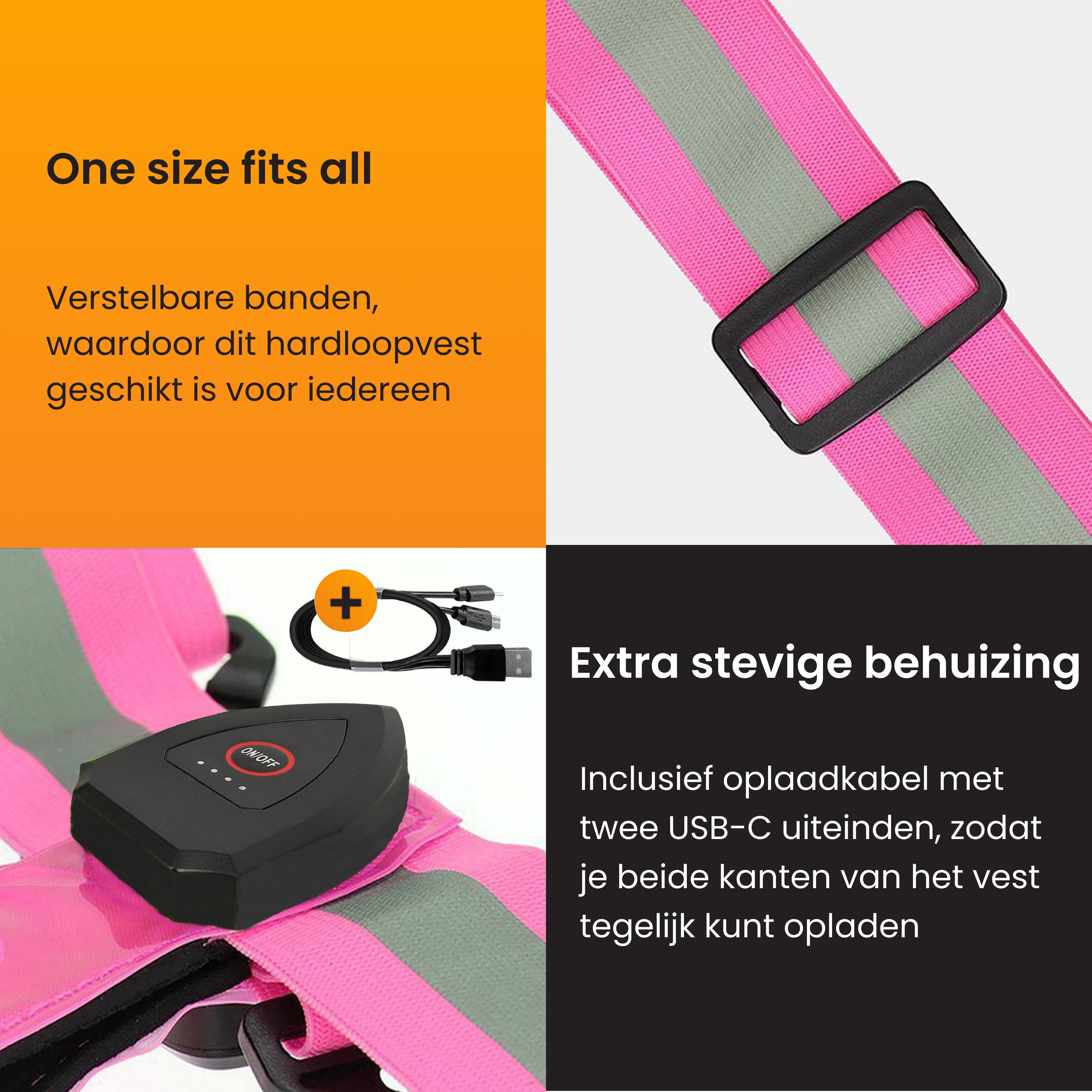 Oplaadbare reflecterende hardloopvest met USB-C