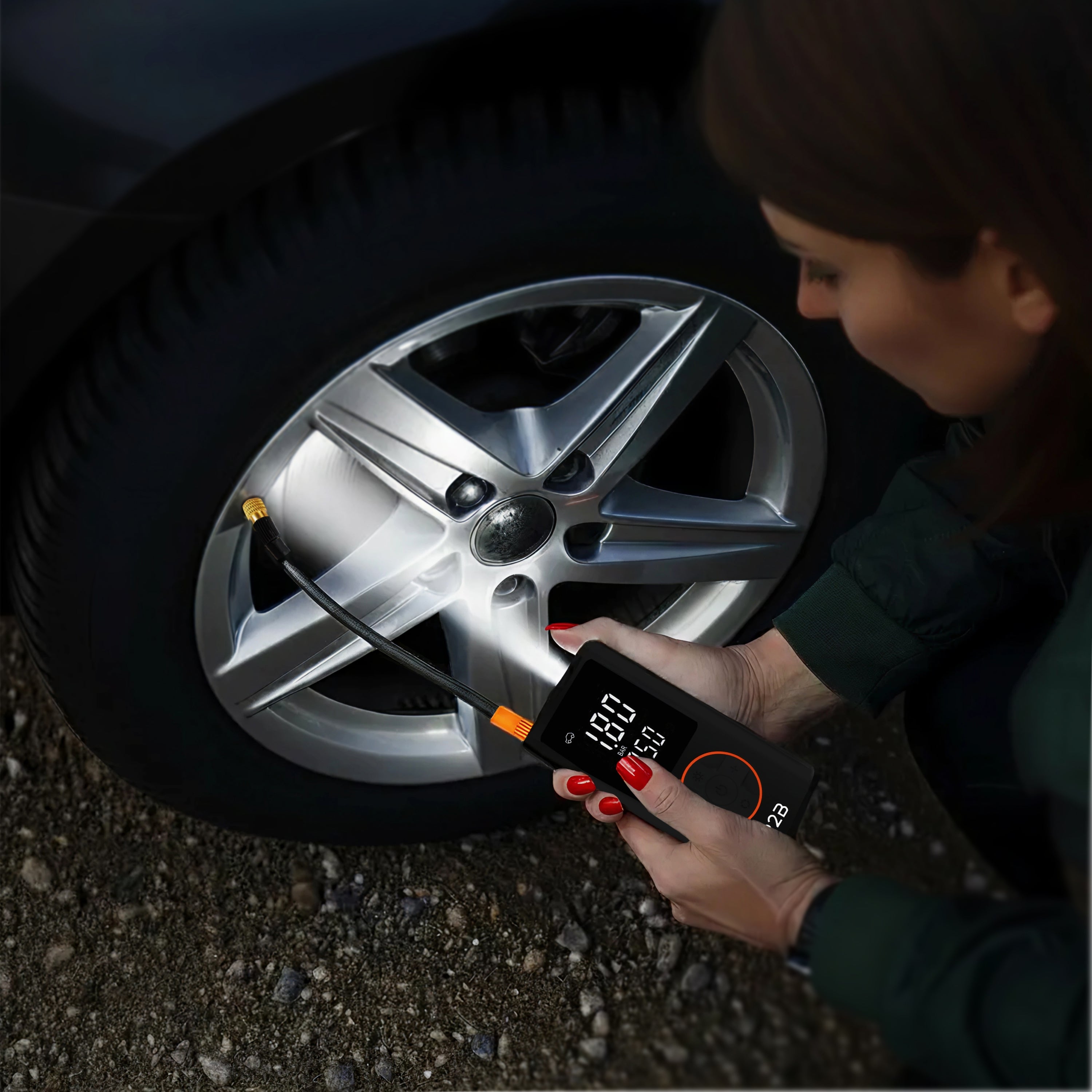 The R2B portable air compressor is designed for the road. Its compact size fits easily in your bag or glove compartment, while its powerful system inflates your tires to the correct pressure in minutes. With five preset modes, you won't have to adjust settings every time—convenient and time-saving.