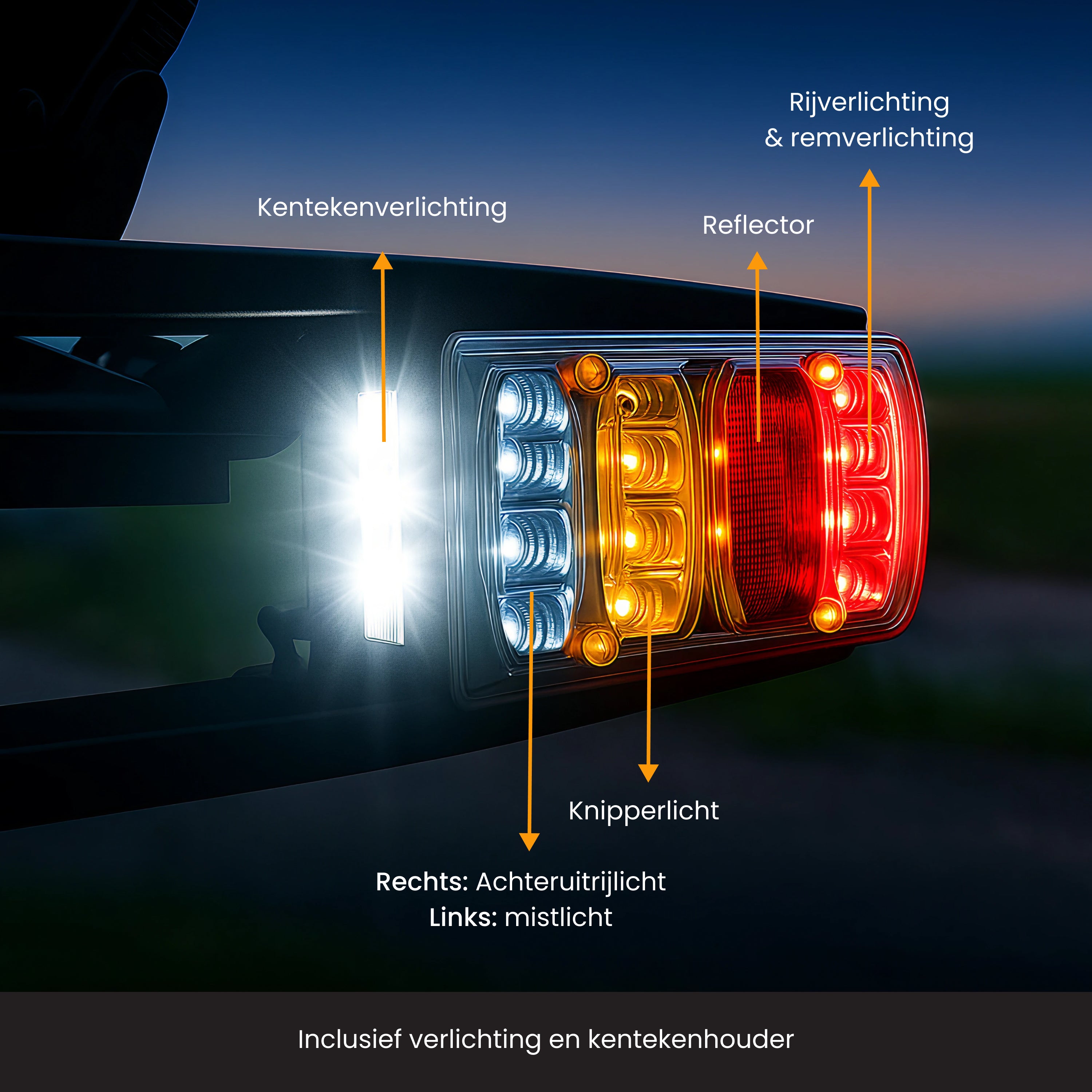 The bike rack features fixed rear lights and a power outlet, including a license plate holder. You can connect it directly using the 13-pin plug. Thanks to the included adapter, it's also compatible with cars with a 7-pin connection, so you can be safe and visible on the road!