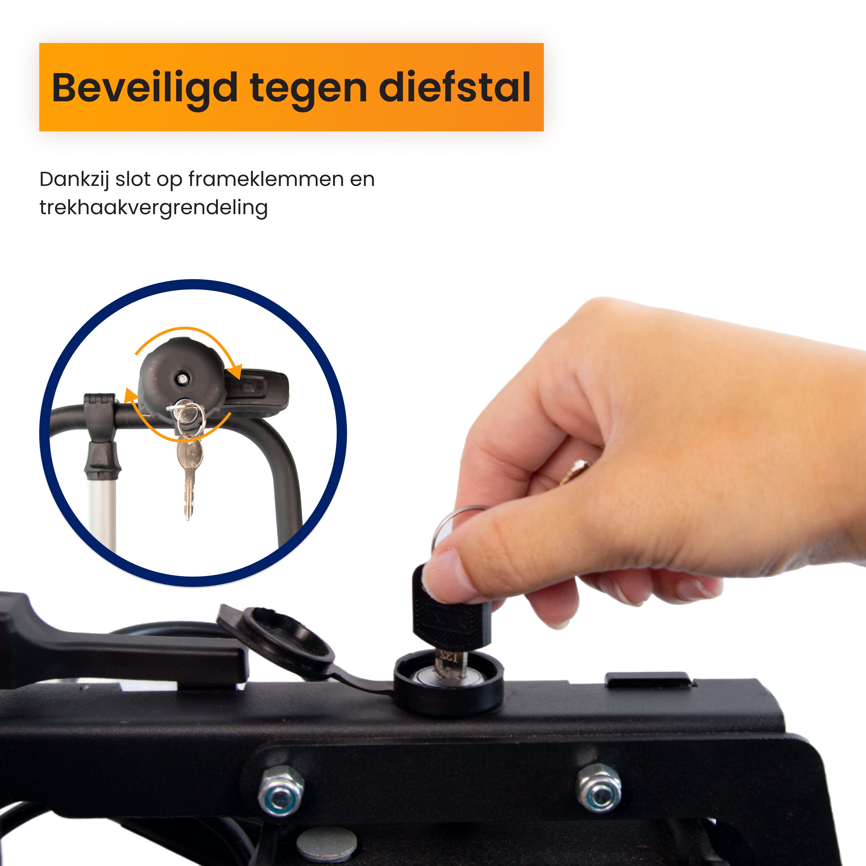 Both the frame clamps and the tow bar lock are equipped with a lock and key. This allows you to leave the carrier with peace of mind, even if you need to leave your bikes unattended for a while.