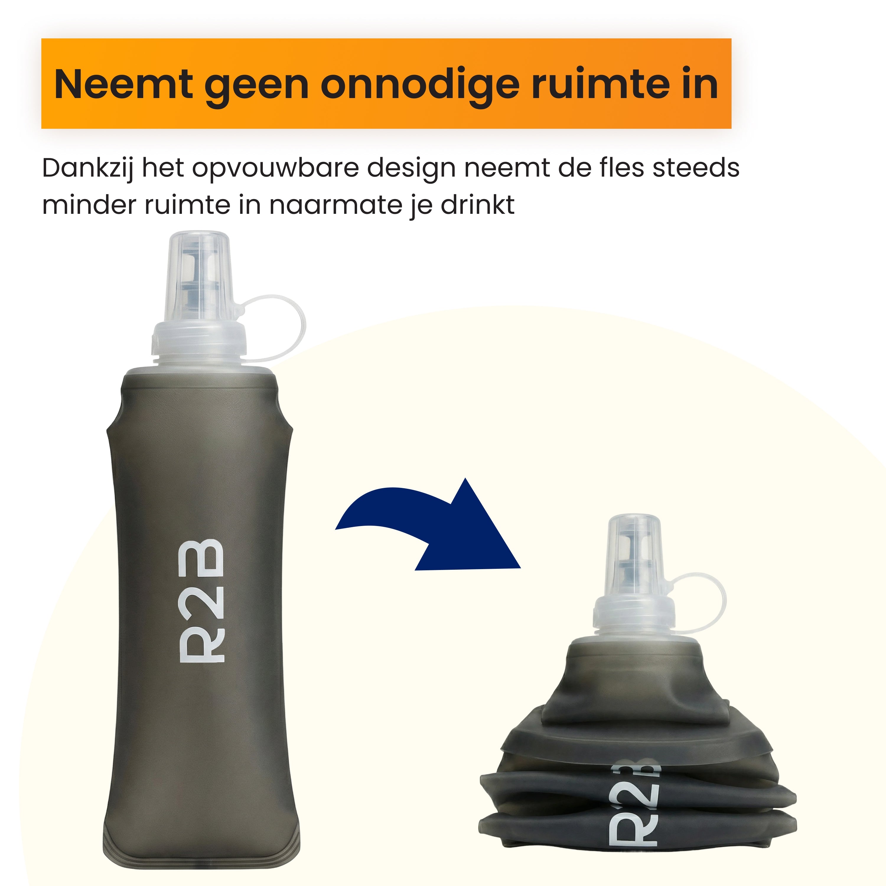 Opvouwbare hardloopfles – Wordt kleiner naarmate je drinkt en neemt minimale ruimte in.