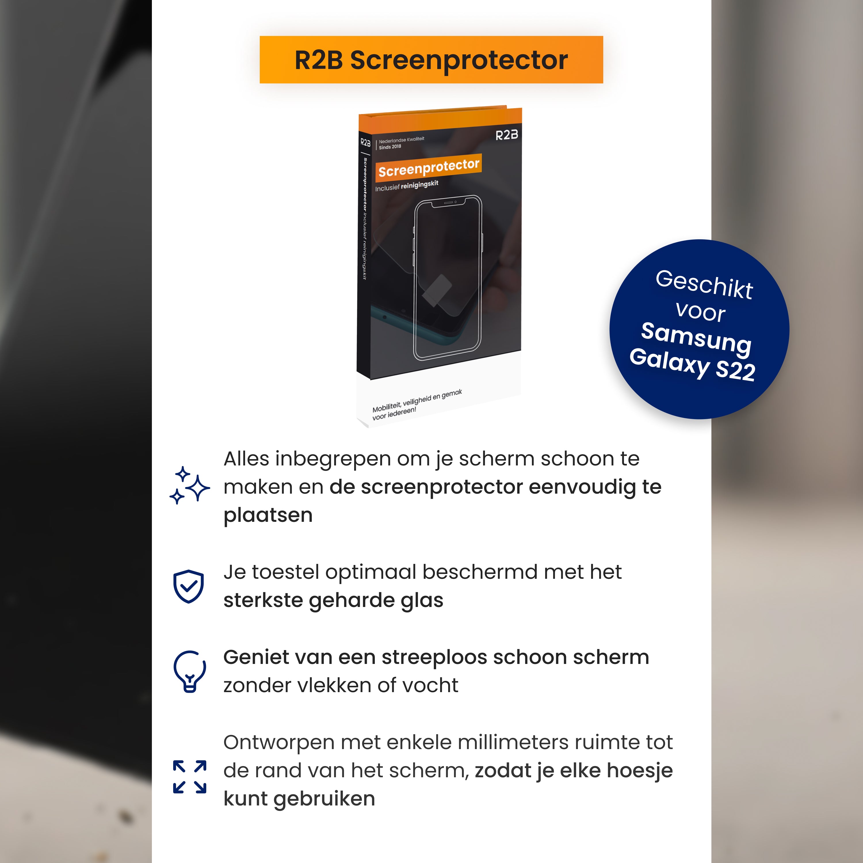 Bied je toestel optimale bescherming met deze R2B screenprotectors, geschikt voor Samsung S22. Dit pakket bevat twee sterke screenprotectors van 9H tempered glass. Ze zijn krasbestendig, hebben een anti-vingerafdruk coating en zijn waterafstotend. Elk pakket komt met twee volledige reinigingskits (één per screenprotector). Plus, de screenprotectors zijn ontworpen met enkele millimeters ruimte tot de rand van het scherm, zodat je elk type telefoonhoesje kunt gebruiken in combinatie met deze screenprotectors!