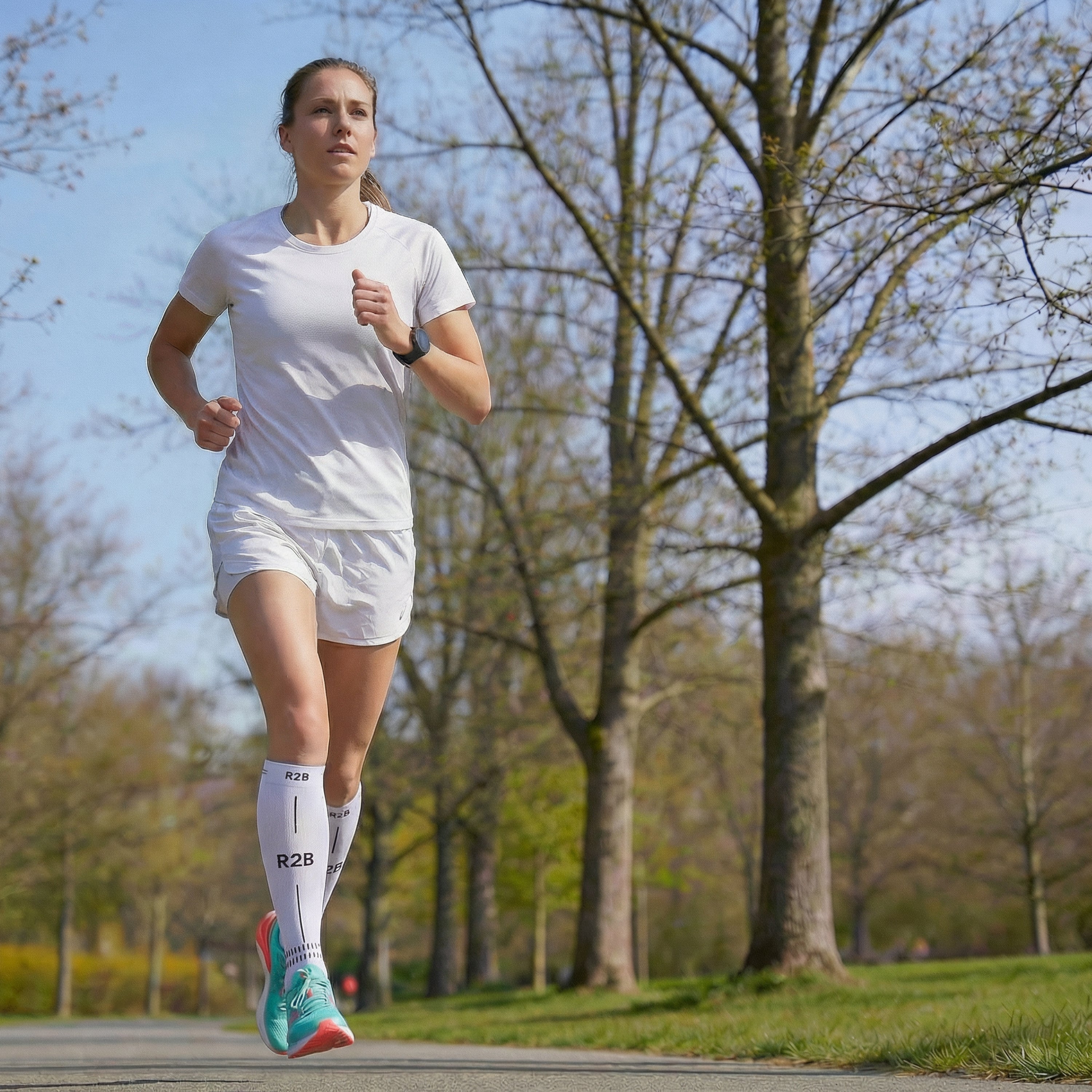 Heb jij tijdens of na het hardlopen weleens last van zware benen, pijnlijke schenen of snel verzurende spieren? Dat vermoeide gevoel kan je tempo drukken en maakt bewegen minder prettig. De R2B compressiekousen bieden precies de ondersteuning die je benen nodig hebben tijdens intensieve belasting. Ze stimuleren de doorbloeding, verminderen druk op je onderbenen en helpen je benen licht en energiek te blijven, tijdens de warming-up, je training en de cooling-down!