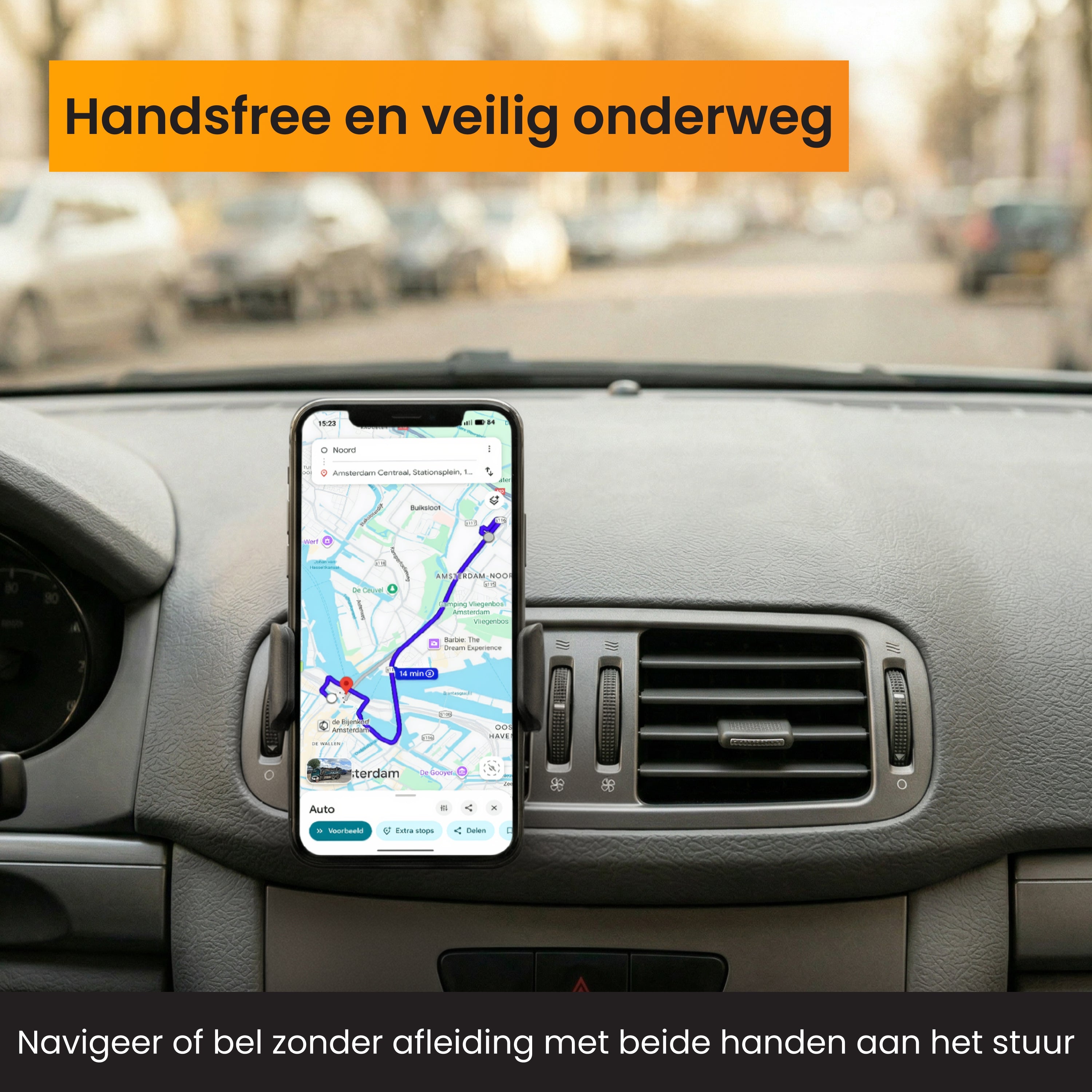 Deze telefoon houder zorgt ervoor dat je eenvoudig handsfree kunt bellen en navigeren zonder je telefoon vast te houden. Hierdoor houd je je focus op de weg en voorkom je gevaarlijke situaties. Gebruik je vaak helpende apps tijdens het rijden? Dankzij de stevige grip van deze gsm houder blijft je telefoon stabiel en goed zichtbaar, zelfs tijdens lange ritten of op hobbelige wegen.